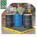 機車上下,開進開出 不需要斜坡,柔性邊墻可以彈回,允許叉車和機車開進開出 8桶單元可以儲放2個IBC 4桶襯墊可以儲放1個IBC