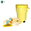 輪式泄漏處理桶套裝機動性當然好,可以非常方便快捷地及時反應。泄漏應急處理桶里包含相應的泄漏應急處理材料,分成吸油專用(油和碳氫化合物液體)、通用型(油、水和化學物質)和化學吸液型(化學品,腐蝕性液體和危險化學品)。條狀、片狀吸附棉按一定比例組合,加上ENPAC獨有的超強萬能型Ensorb吸附劑,再配備上相應的防護產品,使應對突發之泄漏更迅速有效。