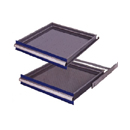 工具柜抽屜特殊滑軌設計,并用軸承滑動,載重進出輕盈順暢。 單軌抽屜打開率90%,每層抽屜平均載重80-100kg。 雙軌抽屜可100%打開,每層抽屜平均載重160-200kg。